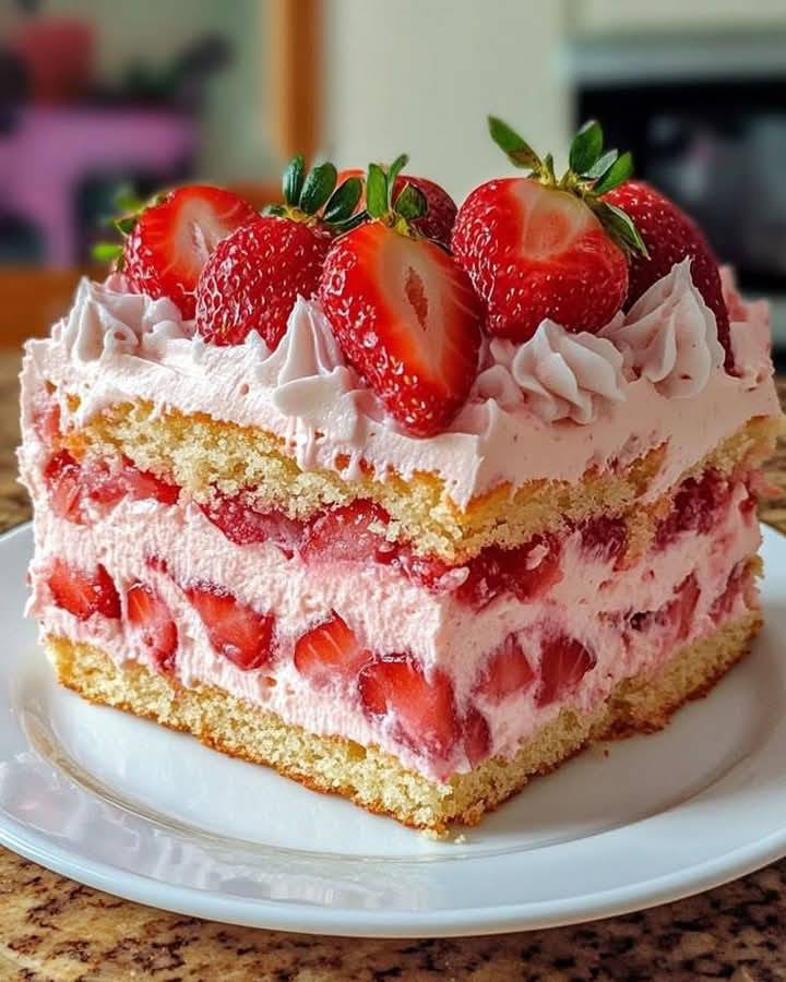 Chaque bouchĂ©e est un Ă©quilibre entre la douceur du biscuit, la fraĂźcheur des fraises et la lĂ©gĂšretĂ© de la crĂšme fouettĂ©e 😍