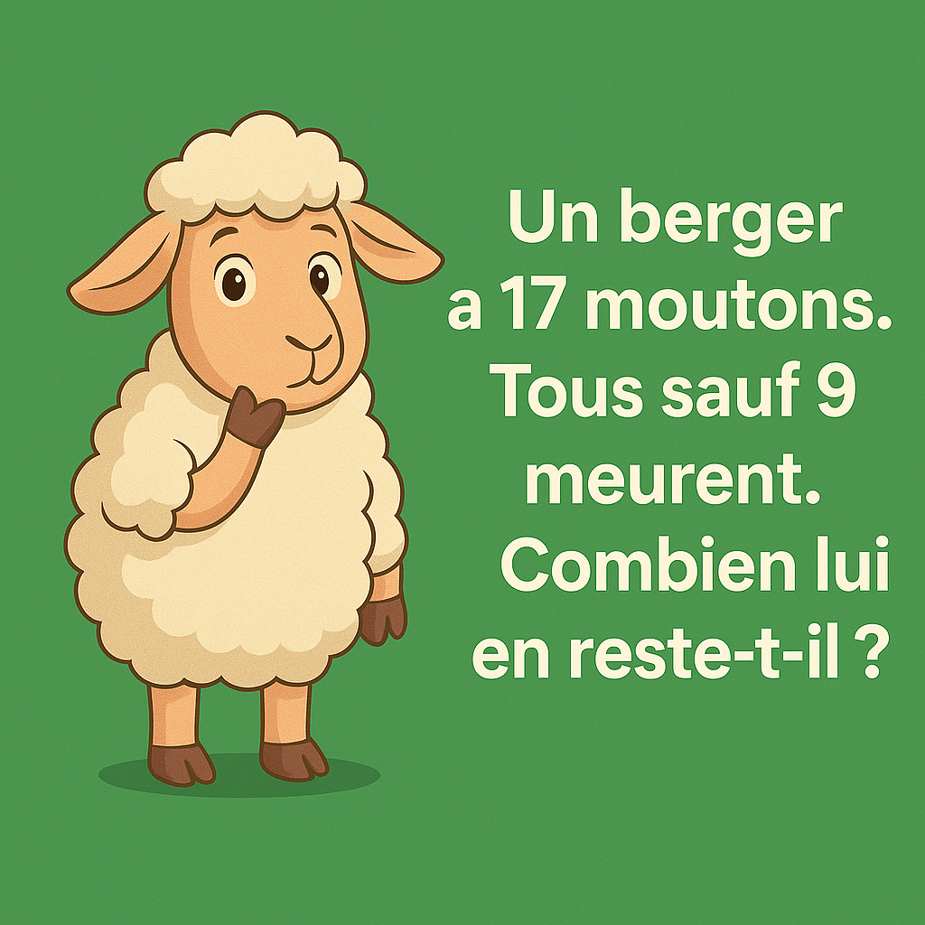 Un berger a 17 moutons. Tous sauf 9 meurent. Combien lui en reste-t-il ?