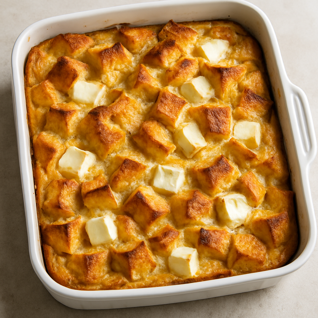 Une texture fondante et crémeuse, entre pain perdu et cheesecake. Une préparation la veille pour un matin sans stress. Personnalisable avec des fruits, du streusel, ou des noix croquantes. Un plat convivial qui régale petits et grands.